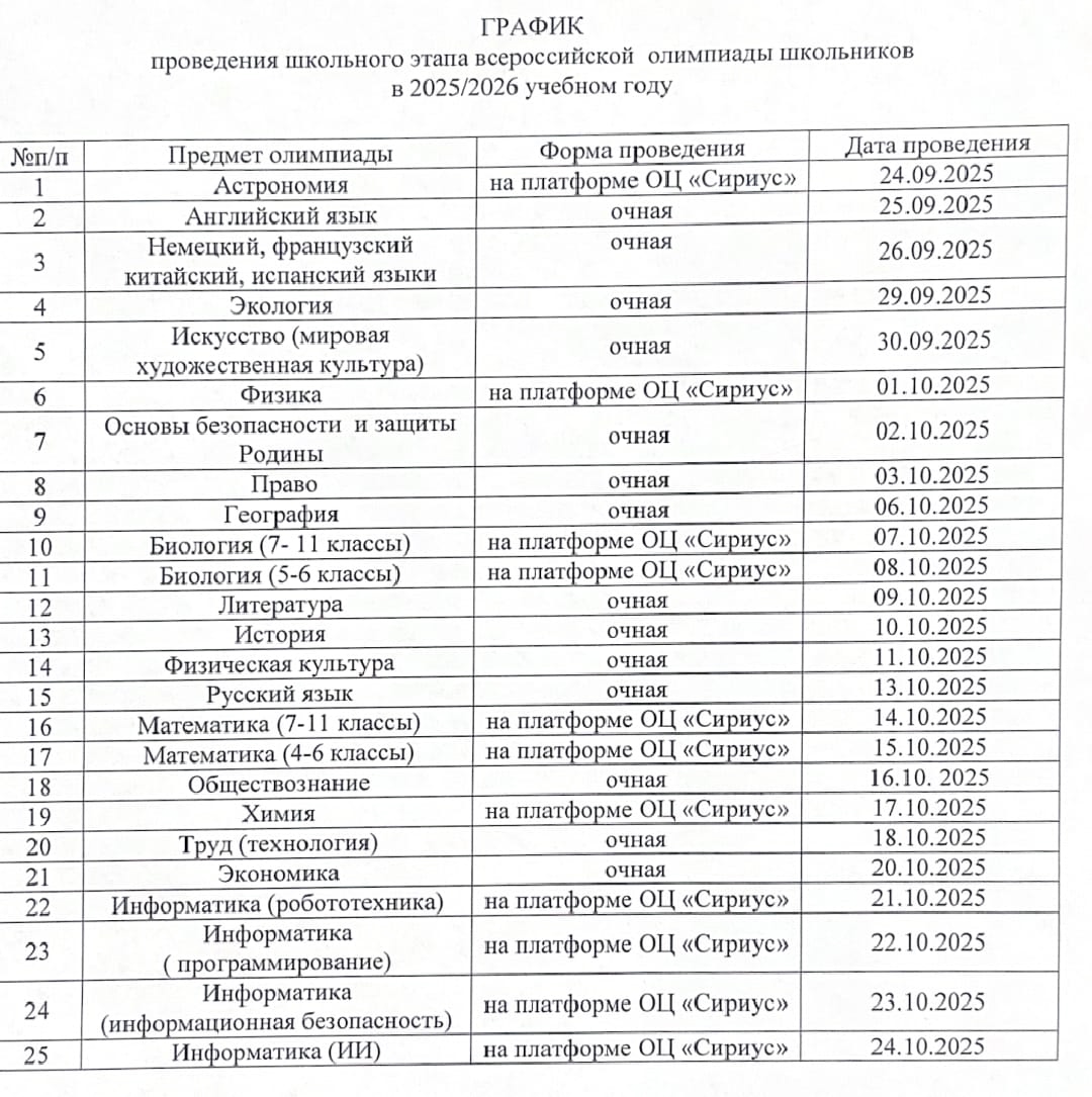 Всероссийская олимпиада школьников 2023-2024 учебный год |